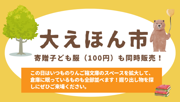 ■大えほん市■5/20(水) 9:30-11:30■リビングスタイルハウズ北館内■えほんALL200円 子ども服ALL100円■リビングスタイルハウズ北館奥に常設されているりんご箱文庫。毎月第3水曜日のこの日はいつもより…